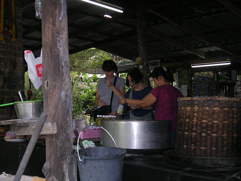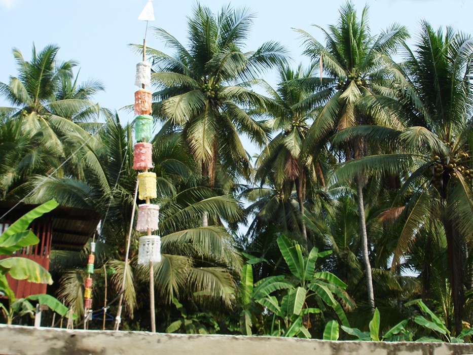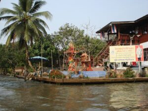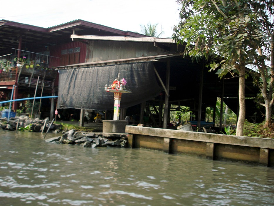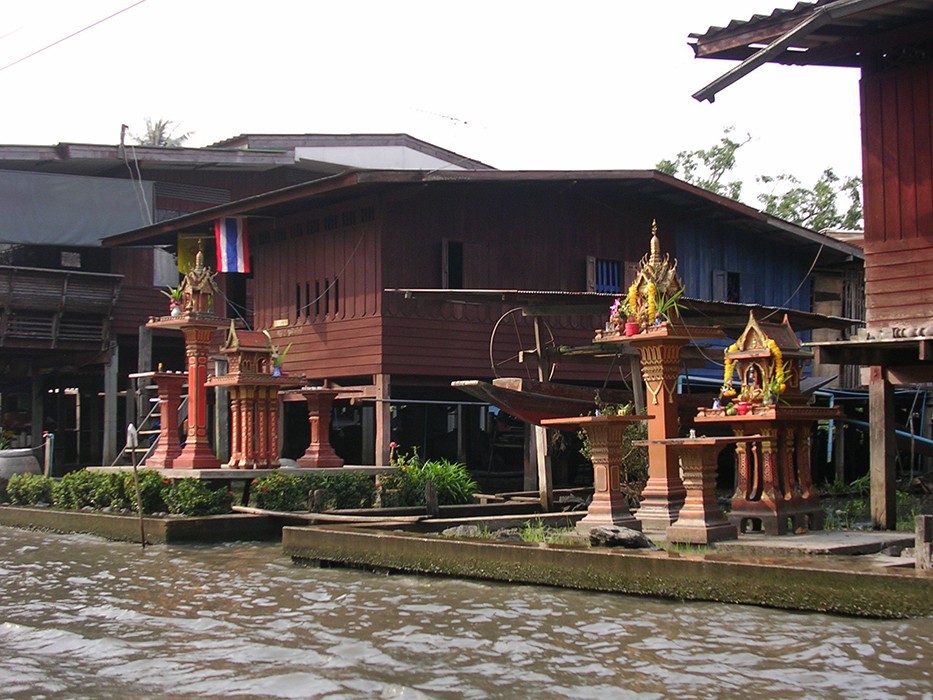 Dojeżdżamy naszym autokarem do nadrzecznego parkingu i wsiadamy do łodzi. Mijamy małe i większe domy tonące w kwiatach i zieleni, stojące tuż nad rzeką. Przy domach misternie zdobione domki duchów.