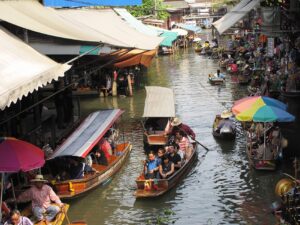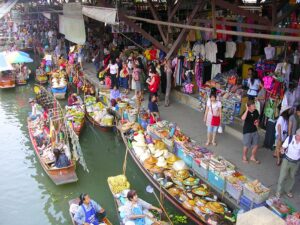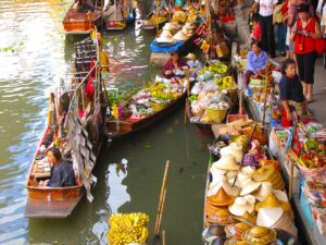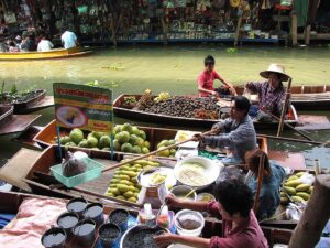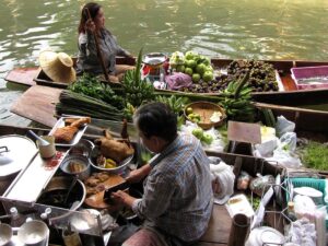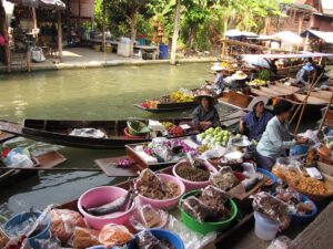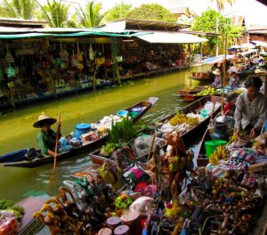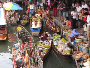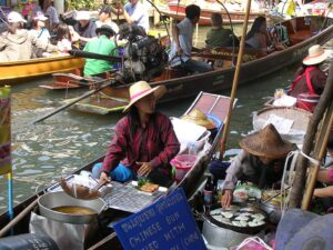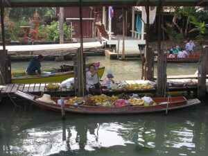 Przejażdżka łodzią po klongach, targ wodny