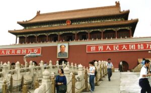 Odwiedzamy plac Tiananmen – Plac Niebiańskiego Pokoju. Ten wielki plac w centrum Pekinu wybudowano przed Zakazanym Miastem w roku 1417. Odbywały się tu ceremonie religijne, parady wojskowe, ogłaszano tu cesarskie dekrety… Po jego bokach mieściły się biura cesarskich urzędników.