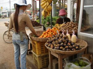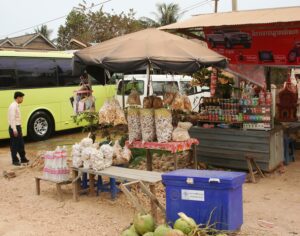 Droga – Route 33 i handel przydrożny w kambodżańskim stylu.