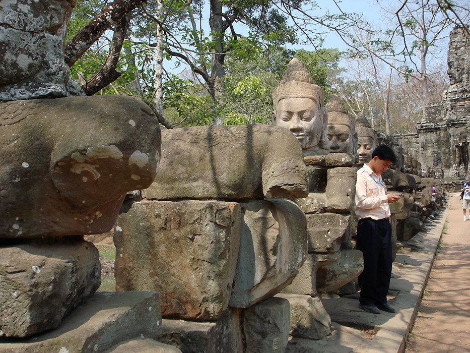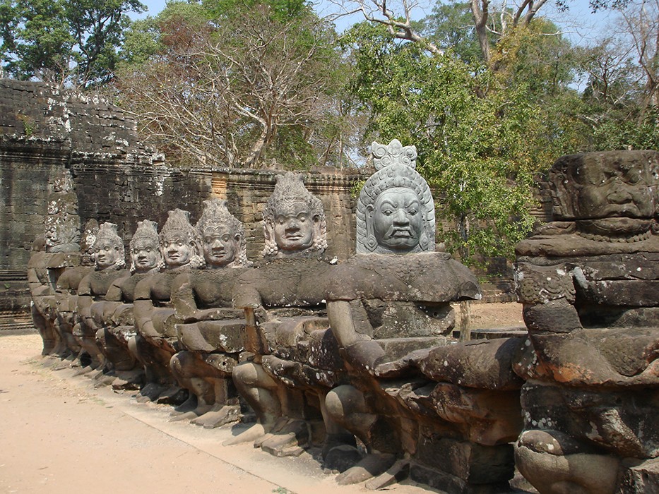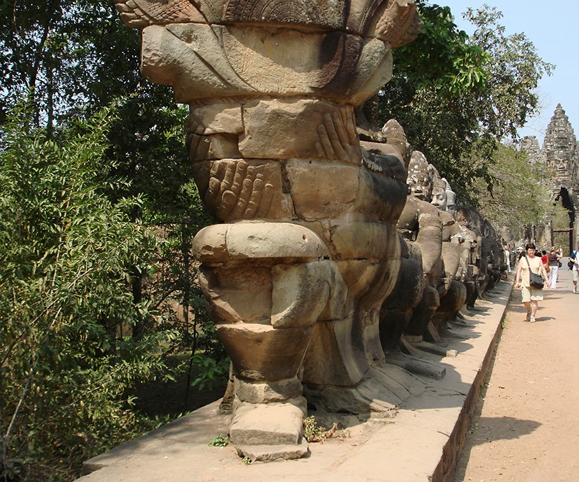 Najbardziej znana jest Aleja Gigantów prowadząca do Bramy Południowej. Jej balustrady to po każdej stronie 54 kamienne figury o wielkich głowach trzymające ogromnego węża Naga. Po jednej bogowie (dewas), po drugiej demony (asuras). Ta dekoracja symbolizuje mit z hinduistycznej mitologii o „Mąceniu Oceanu Mleka”.
