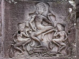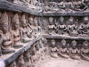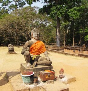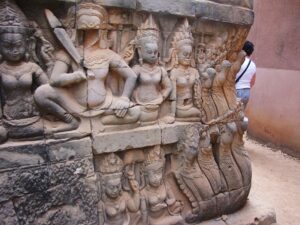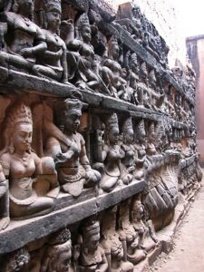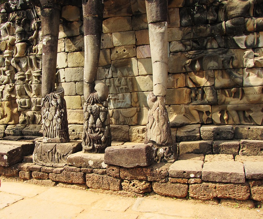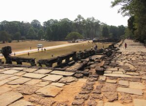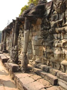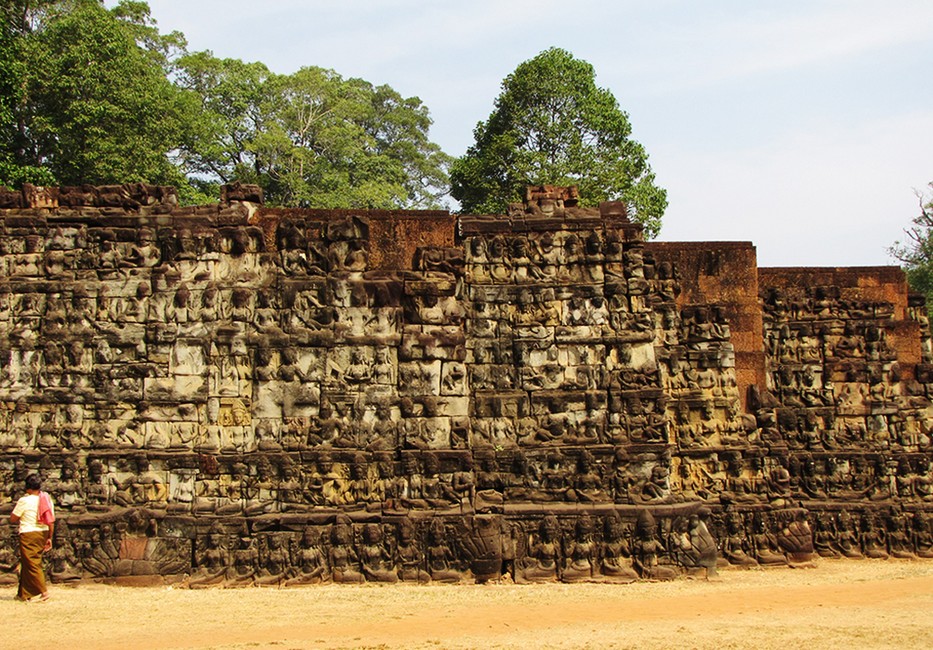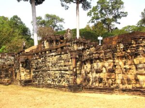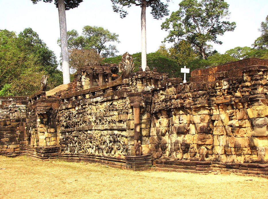 Znajdujący się w pobliżu Taras Trędowatego Króla zdobiony jest płaskorzeźbami przedstawiającymi bogów, demony i mityczne stworzenia. Sugeruje to jego sakralne znaczenie. Przeznaczenie tarasu jak i jego nazwa pozostają bardziej w domysłach.