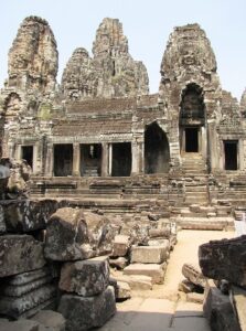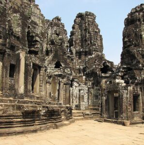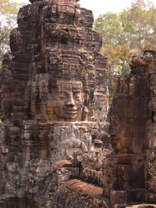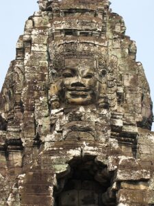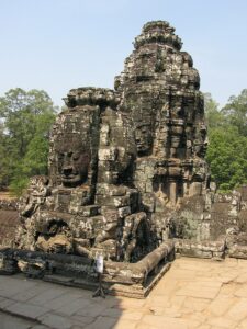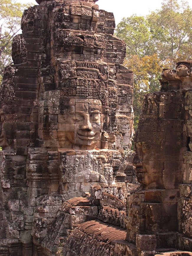 Bayon to 54 monumentalne wieże (do dziś przetrwało ich 37), a każdą z nich zdobią wykute w kamieniu cztery twarze zwrócone w cztery strony świata. Według badaczy mogą one przedstawiać bodhisattwę Awalokiteśwara* albo też samego króla Dżajawarmana VII. Te tajemnicze, łagodnie uśmiechnięte kamienne twarze wydają się obserwować odwiedzających, przyglądać się im z każdego kąta.