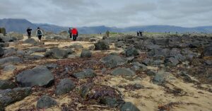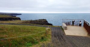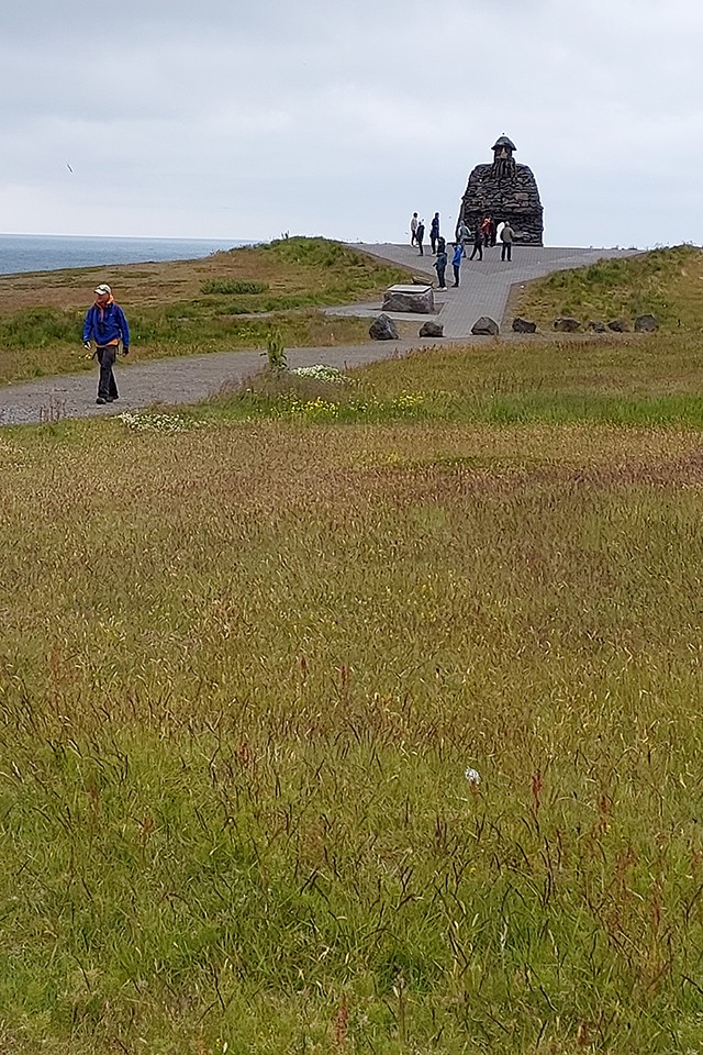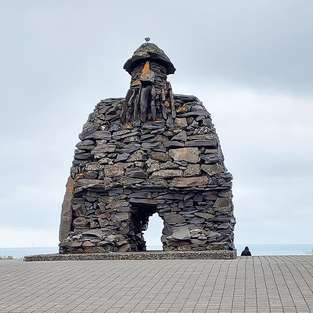 Na lancz zatrzymaliśmy się w niewielkiej nadmorskiej wiosce Arnarstapi. Szczególną atrakcją Arnarstapi jest ogromna rzeźba wykonana z dużych, nieregularnych kamieni, usytuowana na wzgórzu przy brzegu oceanu. To Bárður Snæfellsás, który według podań zamieszkiwał w tych okolicach. Autorem tego dzieła jest Ragnar Kjartansson – jeden z najbardziej znanych islandzkich rzeźbiarzy.
