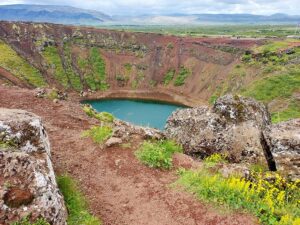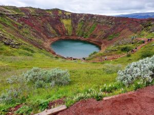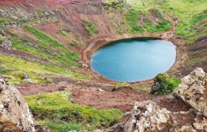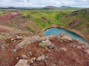 Krater Kerid odległy około 70 km od Reykiaviku powstał około sześciu i pół tysiąca lat temu. Kerið był wtedy aktywnym stożkiem wulkanicznym.
