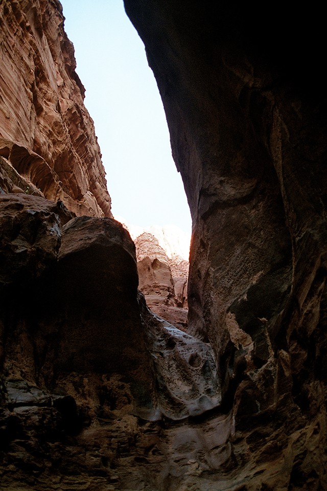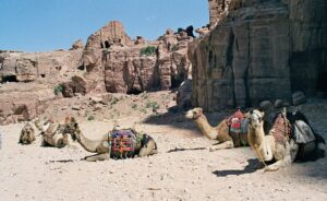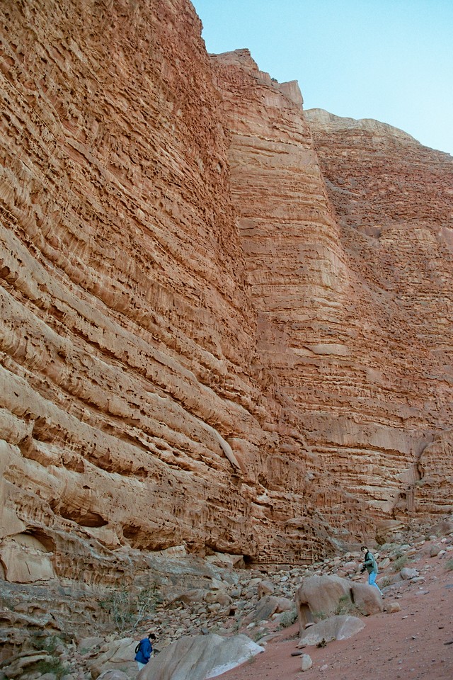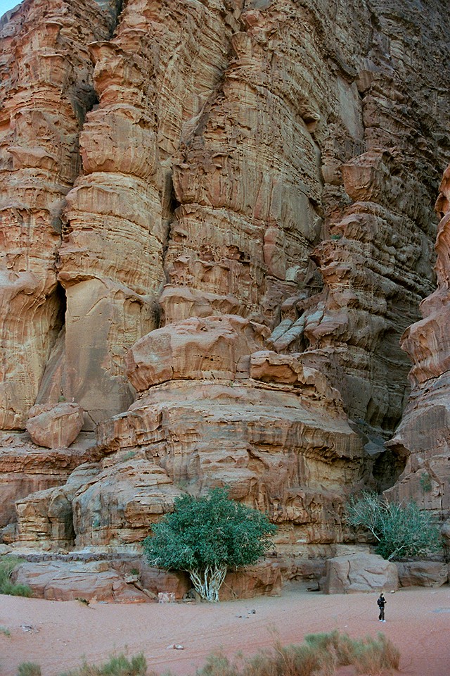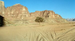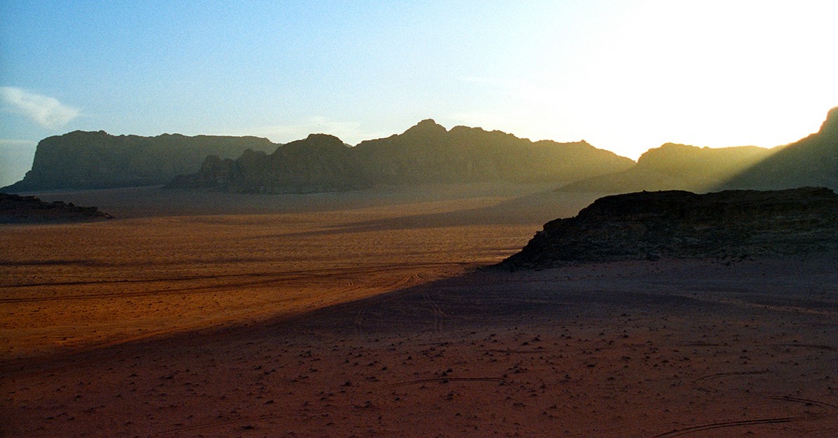 Na pustynię Wadi Rum przyjechaliśmy wczesnym popołudniem. Słońce jeszcze było dość wysoko. Zachwycił mnie kolor tych czerwonych piasków, przy tych kolorach inne dotychczas widziane przeze mnie pustynie wydały mi się całkiem bezbarwne.