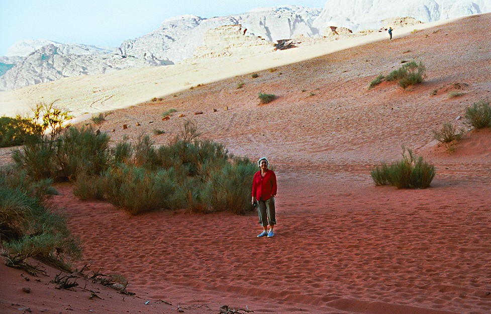 Słońce zbliża się ku zachodowi. Zasiadamy na zboczu góry i obserwujemy, jak zmienia się oświetlenie, jak wszystko w koło nabiera bardziej intensywnych kolorów, jak pogłębia się czerwień. Widok to był cudowny. Szkoda, że na tę przeogromną pustynię było tylko parę godzin, ale szczęście, że można było ją choć na tych chwil parę zobaczyć. Następnego ranka koniec tej pięknej podroży po Bliskim Wschodzie. Koniec „Baśni z tysiąca i jednej nocy”. Odlot do Warszawy.