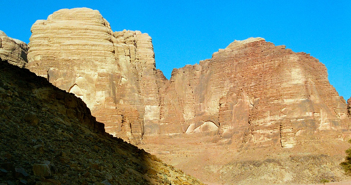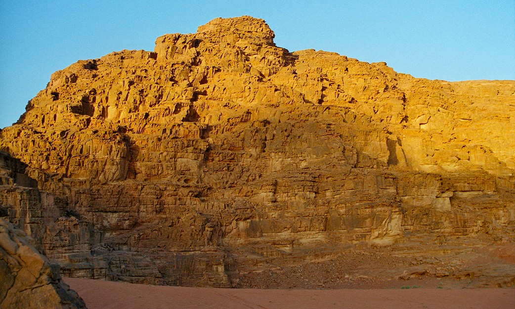 Czerwony kolor piasków i skał Wadi Rum pochodzi od wysokiej zawartości w nich tlenków żelaza. Szczególnie piękne są tu widoki o wschodzie i zachodzie Słońca, kiedy to światło słoneczne pada pod małym kątem, podkreślając intensywność kolorów.