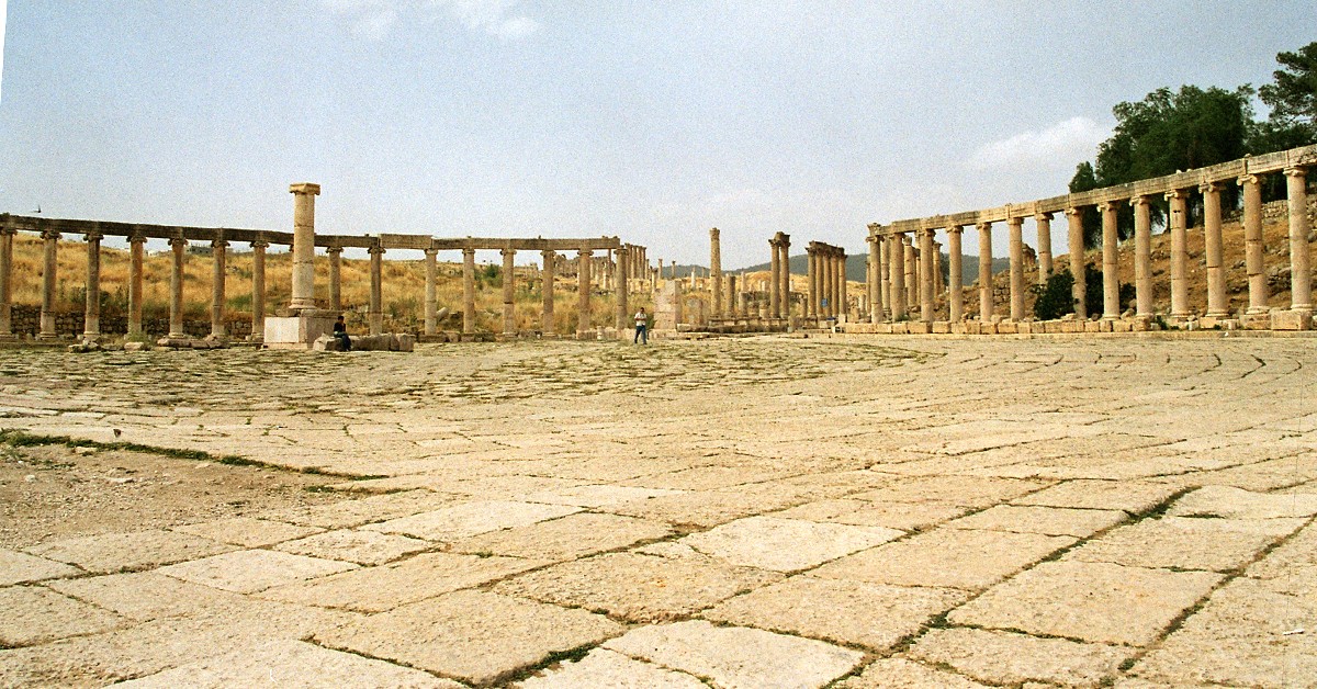 Rankiem wyruszamy z Damaszku. Do granicy z Jordanią jest około stu kilometrów. Droga wiedzie przez pustynne obszary z niską roślinnością i kamienne równiny. Czasem mijamy jakieś niewielkie osady i uprawne pola. Pierwszym miejscem, w którym zatrzymujemy się w Jordanii, jest Jerash.