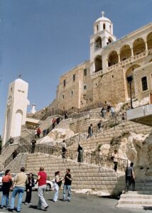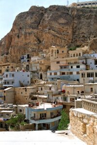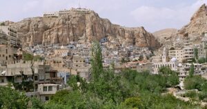 W drodze z Palmyry do Damaszku zatrzymujemy się na parę godzin w Maalouli. Maaloula to niewielkie miasteczko położone w górach Kalamun, części pasma górskiego Antylibanu, 1500 metrów nad poziomem morza. Początki Maalouli sięgają czasów starożytnych. Miasteczko, ze swymi domami o płaskich dachach, budowanymi z kamienia, jakby przyklejonymi do zbocza góry, z wąziutkimi krętymi uliczkami, pozostaje od wieków w niezmienionej formie. Od wieków jej mieszkańcy mówią językiem aramejskim – językiem Chrystusa. Maaloula i pobliskie miasta Bakh’a i Jubba’din są ostatnimi miejscami na świecie, gdzie jest jeszcze używany ten język.