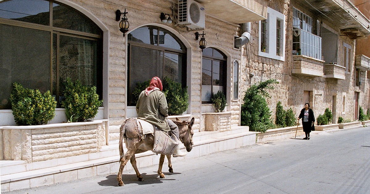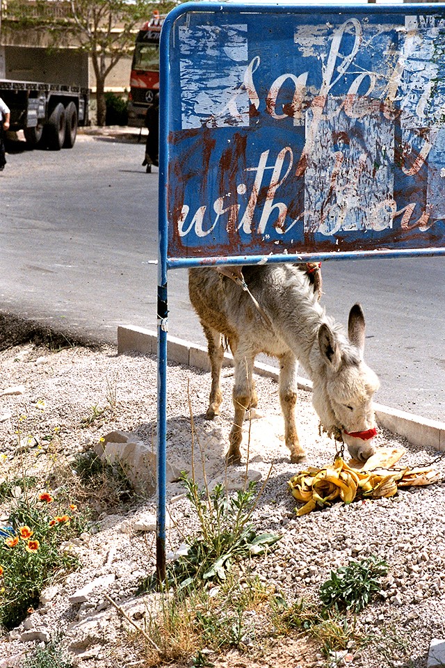 Maaloula wita nas, nieco nadszarpniętą zębem czasu tablicą Welcome to Maaloula. Stojący pod nią osioł, zajmujący się konsumpcją czegoś nieokreślonego, nawet nie raczy choć na moment popatrzeć na przybyszów. Krótki spacer po miasteczku i wyruszamy w dalszą drogę.