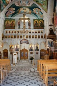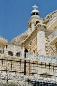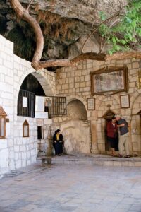 Do miasteczka Maaloula wspinamy się wąwozem, którym dotarła tu niegdyś święta Tekla. W dolinie, w pobliżu groty, w której według tradycji chrześcijańskiej znalazła schronienie przed prześladowcami, znajduje się grecko-prawosławny klasztor Świętej Tekli i przyklasztorny kościół częściowo wybudowany w skale. W tym pięknym kościółku na białych ścianach złocą się rzędy misternych ikon. Na przedkościelnym dziedzińcu studnia, uważana za miejsce cudów i uzdrowień. Przybywają tu pielgrzymi, by napić się z niej wody lub zabrać ją jako relikwię.