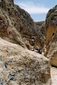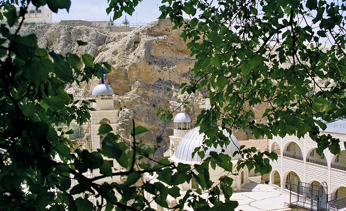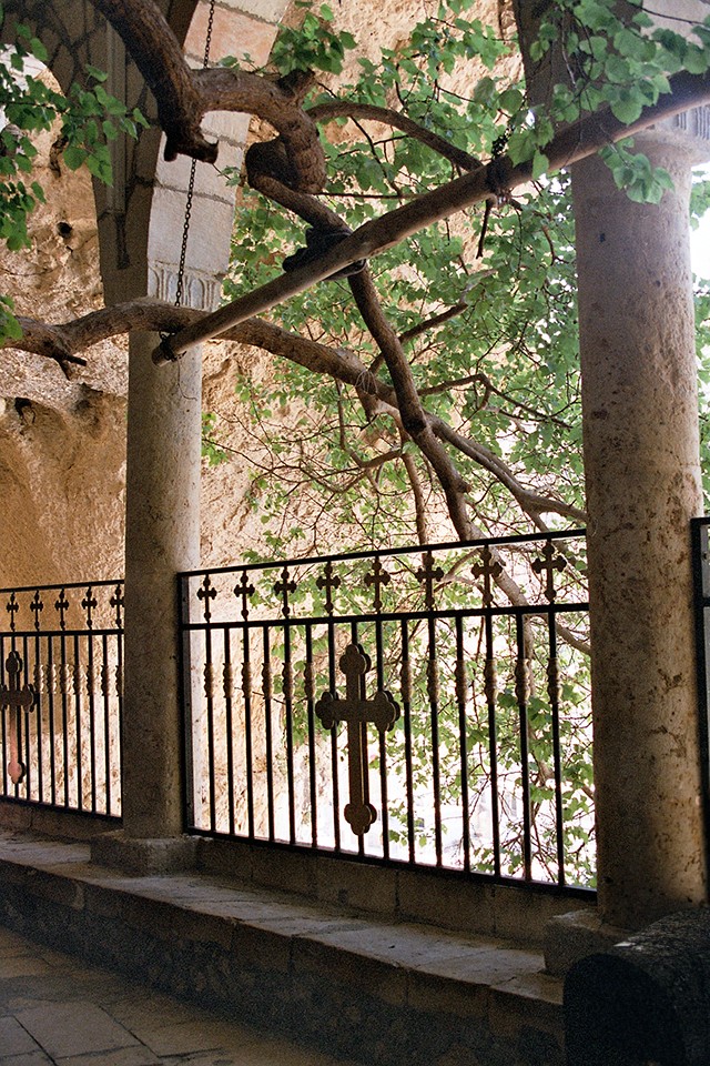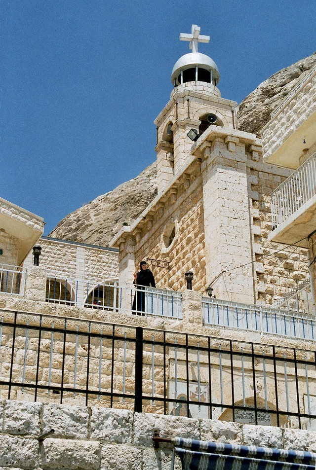 Idąc dalej malowniczym wąwozem, dochodzimy do usytuowanego na wzgórzu greckokatolickiego klasztoru Świętych Sergiusza i Bachusa. To jeden z najstarszych klasztorów w Syrii, zbudowany między 313 a 325 rokiem. Oglądamy piękne widoki na znajdujące się poniżej miasteczko.